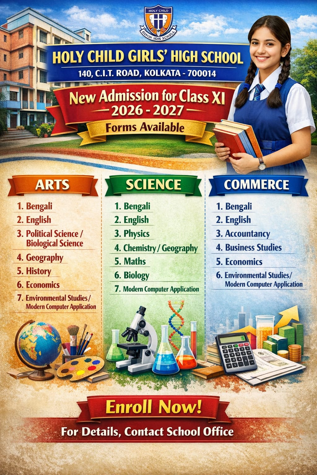 Holy Child Girls' High School (recognised by the Board of Secondary Education - West Bengal) is a Private Christian Minority Institution for Girls, established and administered by the Society of The Sisters of Charity. The school does not............